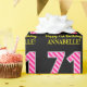 Este divertido design de papel de embrulho com tema de aniversário apresenta um grande número "71", com uma rosa claro e um padrão de listras cor-de-rosa-escuras. Também apresenta a mensagem "Feliz 71ruas Aniversário", e um nome personalizado. O fundo é preto colorido. O papel de embrulho temático de aniversário como este pode ser uma maneira divertida de embrulhar um presente ou presente para celebrar o aniversário de 711 ruas de alguém. [~Z0000376]