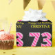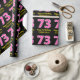 Este divertido design de papel de embrulho com tema de aniversário apresenta um grande número "73", com uma rosa claro e um padrão de listras cor-de-rosa-escuras. Também apresenta a mensagem "Feliz 73º Aniversário", e um nome personalizado. O fundo é preto colorido. Esfregar papel como este pode ser uma maneira divertida de embrulhar um presente de aniversário ou um presente dado a alguém que comemora seus setenta e três anos. [~Z0000376]