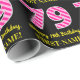 Esta divertida design de papel embrulhado com tema de aniversário apresenta um grande número "79" com uma rosa claro e um padrão de listras cor-de-rosa-escuro, juntamente com a mensagem "Feliz 79º aniversário", e um nome editável. O fundo é preto colorido. Um papel de embrulho divertido como este pode ser usado ao embrulhar presentes que são dados a alguém em comemoração do seu 79º aniversário. [~Z0000376]