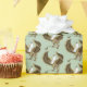 Um grifo de fantasia marrom e branco em voo num pano de fundo verde-sábio