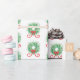 Este papel de envolvimento do feriado caracteriza um teste padrão de grinaldas do Natal com folhas verdes, as bagas vermelhas e arcos vermelhos.