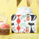Médio do século design com um toque retrorreflector com gatos pretos do estilo atômico, bolas de Natal verdes e vermelhas e estrelas pretas em um fundo com padrão vermelho, verde e branco. Um design personalizável para você personalizar com seu próprio texto, imagens e ideias. Uma imagem de arte digital original criada por Jess Perry no QuirkyChic Retro.
