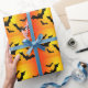 O clipart bonito dos bastões que voam através de um fundo amarelo e alaranjado fará este papel de papel de embrulho perfeito para a doação dos aniversários de outubro e do presente do Dia das Bruxas!