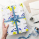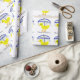 Papel de enrolar Chá de fraldas adorável. Cute Baby Yellow Ducky com guarda-chuva azul marinho e fitas cor-de-rosa, azuis e amarelas penduradas de um guarda-chuva. O guarda-chuva tem o botão branco preto rico e o topo. Com o texto dentro guarda-chuva, doce bebê no caminho. Personalize com o chá de fraldas do nome da futura mãe. Adorável para um bebê ou uma menina a caminho. Arte original de TamiraZDesign.