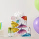 Este papel de embrulho colorido apresenta guarda-chuvas e aguaceiros. É perfeito para enxovais de noiva ou chá de bebê!