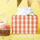 Um papel de envolvimento projetou com um teste padrão alaranjado e branco brilhante do guingão no tamanho médio.