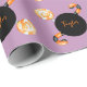 Um divertido papel de embrulho do Halloween personalizado com um tema de doce, em laranja e preto sobre um fundo lilás. Elegante, moderno, simples e elegante, uma escolha encantadora para uma menina que comemora seu décimo sexto aniversário no Halloween ou perto dele, para um pequeno aniversário de abóbora ou qualquer aniversário ou festa de Halloween em que você vai embrulhar presentes.