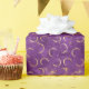 Nossa design de festas de Halloween é perfeita para adicionar um toque de diversão na moda aos presentes de suas festas. O tema moderno e mítico também é perfeito para aniversários durante as estações de outono e inverno. O padrão das luas e estrelas em crescente com efeitos de textura dourada sobre um fundo de aquarela roxa é certamente impressionante. Nosso papel de embrulho de presente é feito de estoque de alta qualidade e certamente fará seus presentes se destacarem. Então, não hesite, peça seu papel de embrulho hoje!