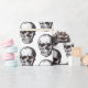 Papel de embrulho preto e branco em forma de crânio. Perfeito para presentes de Halloween, festas góticas, ou adicionar uma reviravolta feia aos presentes de aniversário. Um design de crânio versátil que funciona para feriados assustadores, presentes inspirados em punk, ou estilo gótico ao longo do ano.
