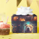Papel De Presente Halloween Pitbull Com Pumpkins Assustado