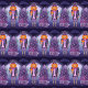Um pirata-preguiçoso de jack-o-lanterno laranja, segurando uma folha de mapeamento de outono, aparece à luz de uma lua de cheio de Halloween, rodeada por pinheiros roxos cintilantes e abóboras lavandas. Ilustração original do artista Noël Snow.