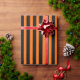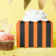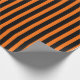 Halloween wrapping paper is shown in a black and orange striped print.