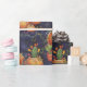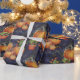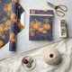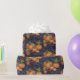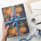 Papel de embrulho de Halloween - Design nº 1: Uma abóbora e um cacto inspiraram design num fundo azul escuro. Com teias de aranha e vinhas acrescentando um toque final ao design.
