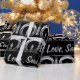 Halo Personalizado em torno do Padrão de Chamada de Vela Preto Elegante e Faux Silver Natal Season ou sua ocasião Papel de Embrulhamento Moderno de Presente, você pode mudar a cor de fundo e o texto