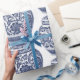 Papel de embrulho de efeito de aquarela de gengibre marinho clássico azul e branco