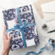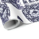 Papel de embrulho de presente de efeito de aquarela de gengibre azul e branco de marinho clássico