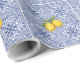 Bring a touch of the Amalfi Coast to your gifts with this stunning Italian ceramic tiles imitation wrapping paper. Featuring vibrant hand-painted lemons in the center of tiles decorated with classic blue floral scrollwork, it's perfect for brightening your gifts with Mediterranean happiness. Elegant, timeless, and full of sunshine.