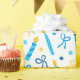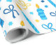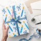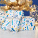 Este papel de embrulho moderno e moderno é fabuloso! Tem velas azuis e douradas, Estrelas de David e arcos. Pegue o suficiente para enrolar todos os presentes.