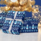 Festivo personalizado Feliz Hanukkah embrulhando papel. Menores azuis e bonitos bonecos vestindo lenços azuis com uma Estrela Branca de David design, suas cabeças pequenas e nevadas tocaram com Kippahs correspondentes. Apresente seus presentes de Chanucá em estilo com este de um tipo de plástico azul. Confira os materiais de plástico de presente, como sacos de presente, etiquetas de presente, tecido, fita e muito mais.
