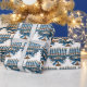 A Happy Hanukkah Blue Menorah With Candles And Bow Wrapping Paper