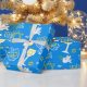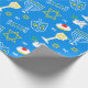 Feliz Hanukkah! Celebrar Hanukkah este ano com este Padrão Hanukkah. Fundo azul marinho com Menorah branco e outros itens de Chanucá.