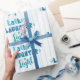 "Latkes, riso e luz." Este papel de embrulho apresenta um padrão de tipografia divertido e caprichoso artesanal em turquesa, azul e lacrimejante junto com linhas de mão azul aqua pálidas desenhadas sobre fundo branco. Sinta o calor e a alegria da temporada de festas sempre que você usa este divertido, simples e moderno papel de embrulho de Chanucá. Cartões, adesivos, travesseiros, decoração doméstica e muito mais estão disponíveis. Transforma um excelente presente em algo ainda melhor! Você pode personalizar facilmente este papel especial de embrulho de férias. Por favor, me mande mensagens com quaisquer perguntas ou solicitações.