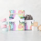 roze gelukkige eerste verjaardag. Leuk om te geven als cadeau aan iemand die één jaar is geworden. Vrolijk design met regenboog kleuren.