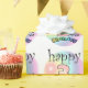 roze derde tweede verjaardag. Leuk om te geven als cadeau aan iemand die drie jaar is geworden. Vrolijk design met regenboog kleuren.