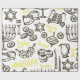 Mande presentes Chanukah para a família e amigos. Enrole seus presentes neste papel de embrulho de design Hannukah. Apresenta Menorah, dreidel, lats ou sufganiyot, Chanukah gelt e mais símbolos judeus.