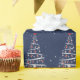 Winter holiday tree with Happy Holidays text, red socks, and baseballs on a dark blue background with snowflakes.