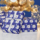 Cute smiling tooth with a toothbrush on a bold blue background.