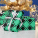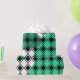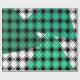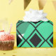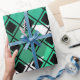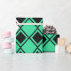 Este papel de embrulho tem um design moderno do século médio de diamantes negros sólidos traços de diamante preto dentro com triângulos em tons de mariscos verdes sob eles, todos num campo de branco.