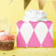 Papel de embrulho concebido com um padrão de harlequina rosa e branco, em tamanho muito grande. Personalize a cor branca de uma forma fácil.