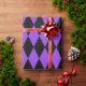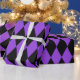 Papel de embrulho concebido com um padrão de harlequina preto e roxo em dimensões extras grandes. Personalize a cor de fundo roxa de uma forma fácil.