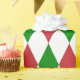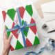 Papel de embrulho concebido com um padrão de harlequina vermelho-escuro, verde e branco, em tamanho extra grande. Personalize a cor branca de fundo, o tamanho do padrão, entre outras opções.