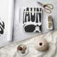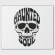Bold black-and-white skull with curved 'Haunted'/'Soul' typography; high-contrast gothic motif for Halloween, rock, and streetwear fans seeking fearless edge.
