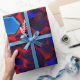 Papel De Presente Hexágono azul misturado com curvas vermelhas sobre