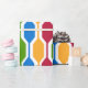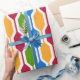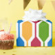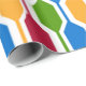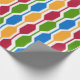 Este papel de embrulho é coberto por um design moderno do século médio de retro-hexágonos em vermelho, ouro, azul, verde. Design divertido.