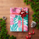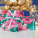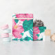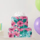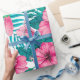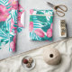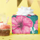 Design de padrão aquoso com flores de hibisco e palmeiras