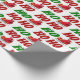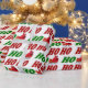 Papel de enrolamento com ho ho ho em texto verde e vermelho em 3D e trajes de Papai noel. Disponível em vários estilos e tamanhos.