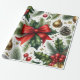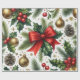 Este papel de embrulho festivo apresenta um clássico design de Natal com sotaques vermelhos e verdes, incluindo um arco vermelho, folhas ocas, pinecones e ornamentos de ouro, todos colocados sobre um fundo branco. É um padrão alegre que complementará lindamente qualquer tema tradicional de Natal.