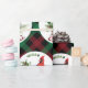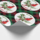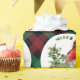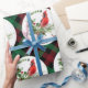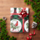 Holly e Cardeal Saudações! Cardeal, agulha de pinho e vaso no Natal.