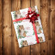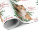 Este bonito papel de embrulho de presente de Natal personalizado mostra um Shetland Sheepdog sentado em frente a sprigs cheios de frutas vermelhas. O texto vermelho à direita diz "FELIZ Natal E FELIZ ANO NOVO". O seu texto personalizado está abaixo disso. Uma aspersão de confete de ouro no fundo adiciona um pouco de brilho, e o padrão se repete na superfície do papel.