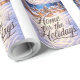 Bring the magic of winter nights to your gift-giving with our 'Home for the Holidays' wrapping paper. Featuring a serene snowy landscape with glowing cabins nestled among trees, this design captures the heartwarming spirit of the season. The rich blues, twinkling stars, and elegant script evoke feelings of peace, nostalgia, and togetherness — perfect for wrapping gifts that come from the heart.
