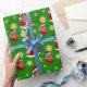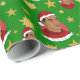 Papel de embrulho de Natal com ilustração de um homem afro-americano ou hispânico de cabelo preto curto e chapéu de Papai Noel vermelho; em círculo vermelho com estrelas, com texto personalizável modelo para seu nome ou mensagem