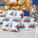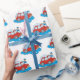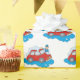 Cartoon de um homem de forma azul lavando um carro vermelho.