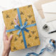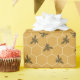 Ouro âmbar honeycomb rede com um padrão de abelhas voadoras para embrulhar presentes para uma celebração de aniversário ou feriado para crianças e adultos, e embrulhar presentes para um apicultor profissional.