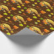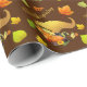 Chifre de Ação de Graças de abundância e folhas de outono em papel de embalagem marrom-escuro.