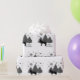Howling Wolf rodeado por árvores-padrão-leopardo e flocos de neve com as palavras Happy Howlidays