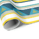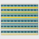 Padrão de listras amarelas, azuis, brancas e triângulos azuis.